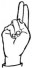 На ћирилици написано МАКСИМ ПЕСЛАЋ састоји се из 12 слова [?]. Исписано ћириличном једноручном азбуком за глувонеме: